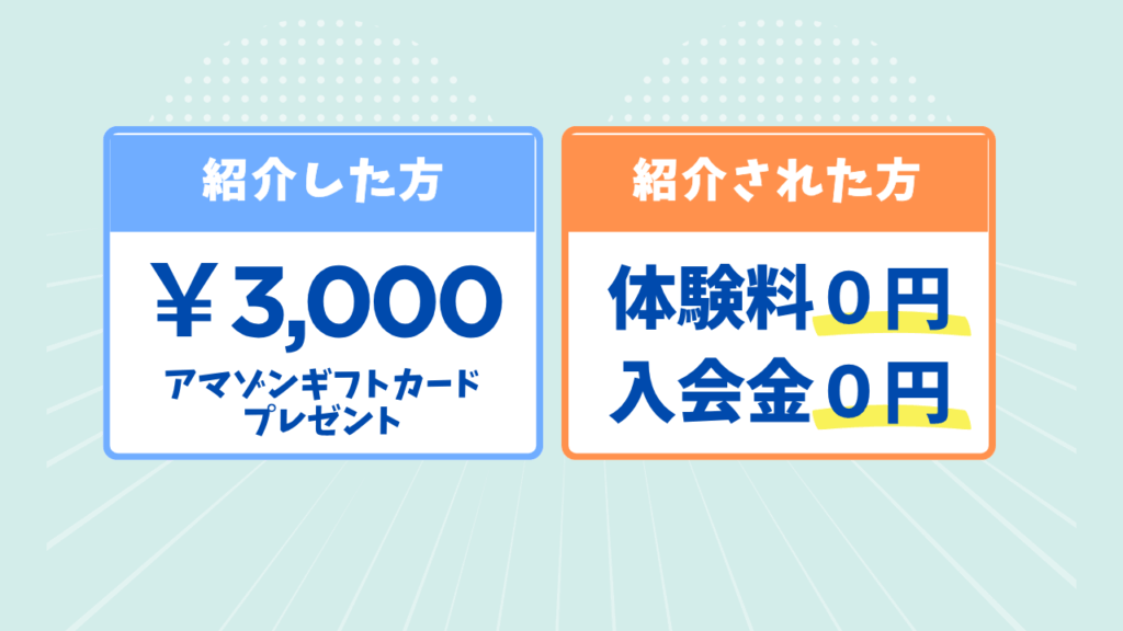 紹介された方:体験料(2,000円)無料&入会金(20,000円)無料